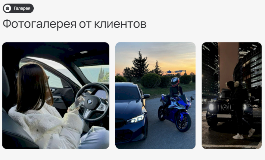 - выбор авто стартует непосредственно после оформления заявки на аренду;